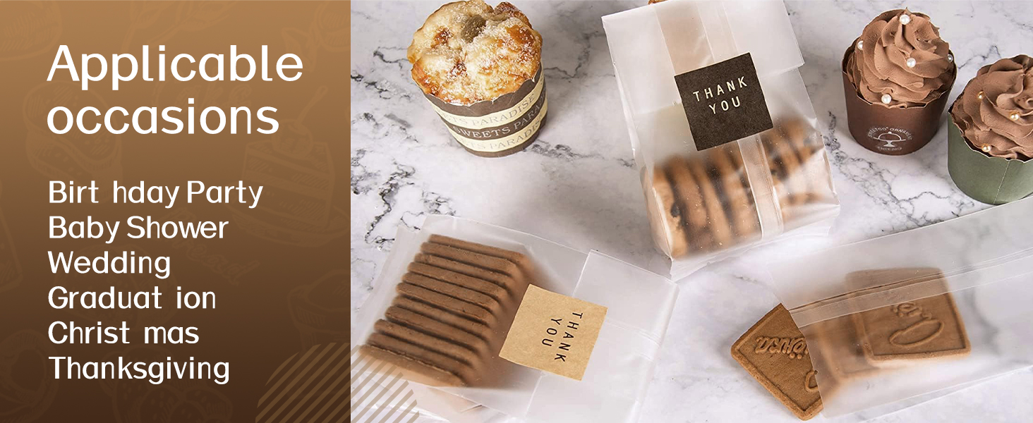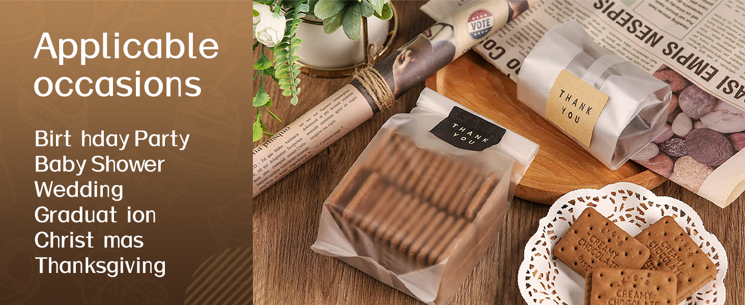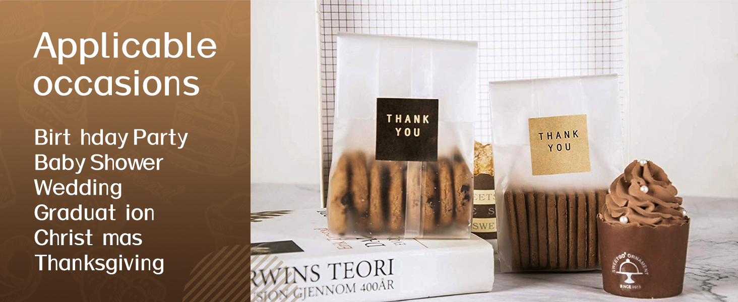 Package Included: 100 pcs clear cookie bags with 100 pcs thank you stickers.Nice candy bags for packaging