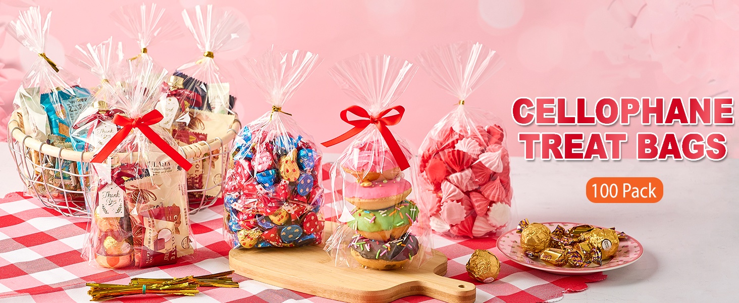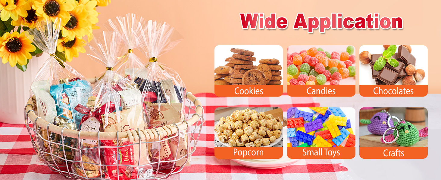 Value Pack: You will get 100pcs clear treat bags and 100pcs twist ties, enough quantity for birthday parties, weddings, graduations, anniversaries, holiday events and more
